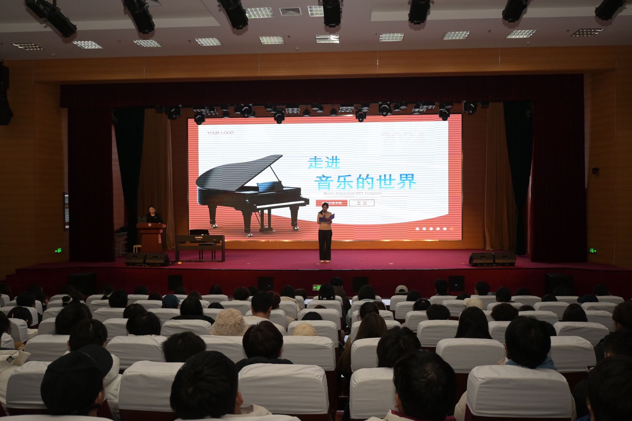 12月5日下午,学院第120场人文与思政讲座在滨海校区图书馆报告厅举行。文化创意学院王立老师作题为“走进音乐世界”的讲座,2024级400余名学生聆听了讲座。