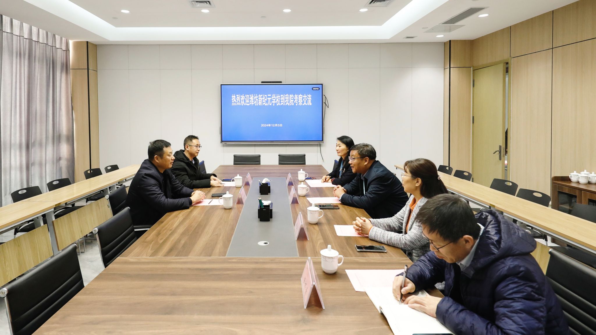 12月3日上午,潍坊新纪元学校校长傅文明、副校长周爱民到我院考察交流。学院党委副书记韩瑞东,副院长陈美霞,党委委员、办公室(统战部)主任(部长)刘志艳,招生就业处相关同志参加交流活动。