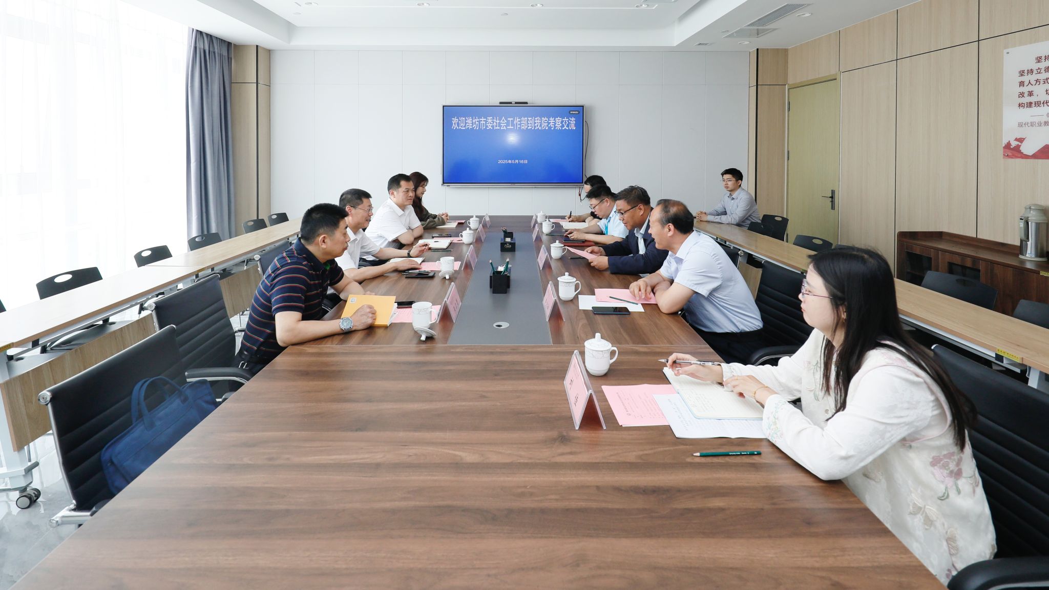5 月 16 日上午,潍坊市委社会工作部副部长、三级调研员王洪海一行4人到我院考察交流。学院院长韩瑞东,学院党委委员、副院长赵宏坤出席活动。团委学生工作处、招生就业处负责同志参加座谈。
