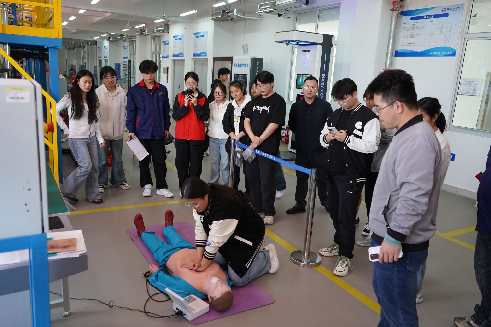 为普及应急救护知识,强化学生安全意识和急救技能,4月24日,由潍坊职业学院团委学生工作处主办、尚行社区承办的“守护生命·安全同行”安全教育与急救技能竞赛活动在金泽楼D区潍坊市应急管理和安全生产法治宣传教育基地举行,来自各二级学院的40余名学生代表参与比赛。