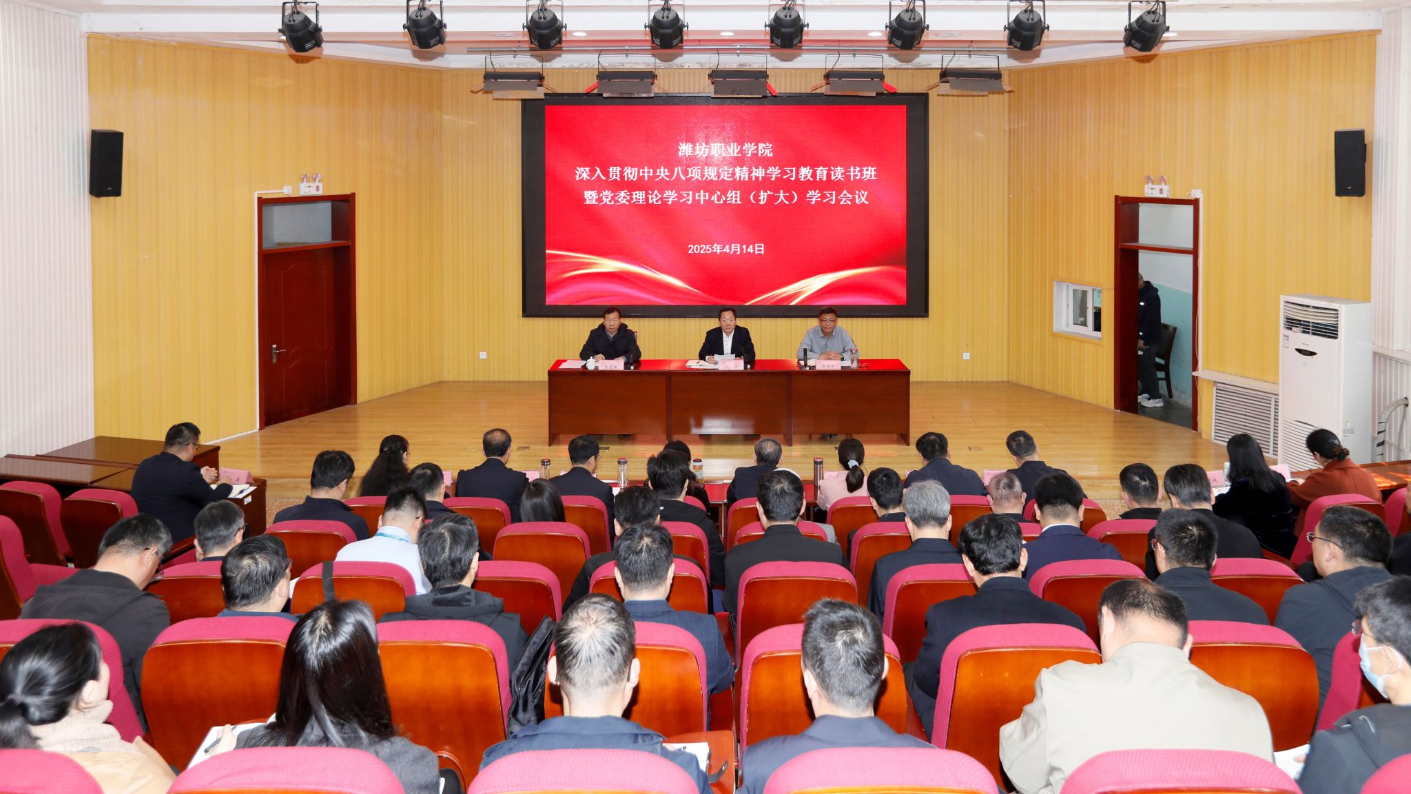 4月14日—15日,学院举办深入贯彻中央八项规定精神学习教育读书班,学院副处级以上干部参加。