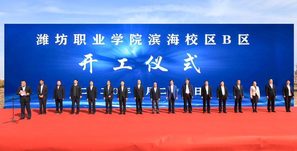 10月28日上午,学院举行滨海校区B区开工仪式。潍坊市委常委、宣传部长、市委教育工作领导小组组长、市委教育工委书记初宝杰,潍坊滨海经济技术开发区党工委副书记、管委会主任张恒道,潍坊市教育局二级调研员李广敬,山东(潍坊)海洋科技大学园管理办公室党组书记、主任闫凤林;学院党委书记马跃启及学院领导班子成员;监理单位及施工单位主要负责人等领导和嘉宾出席仪式。承建单位职工代表、学院师生代表参加。院长王家爱主持仪式。
